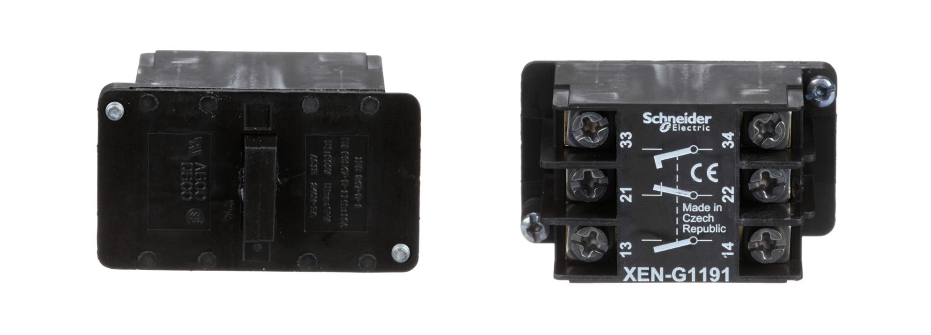 Single contact block, Harmony XAC, spring return, 2 speed, front mounting, 2NO+1NC