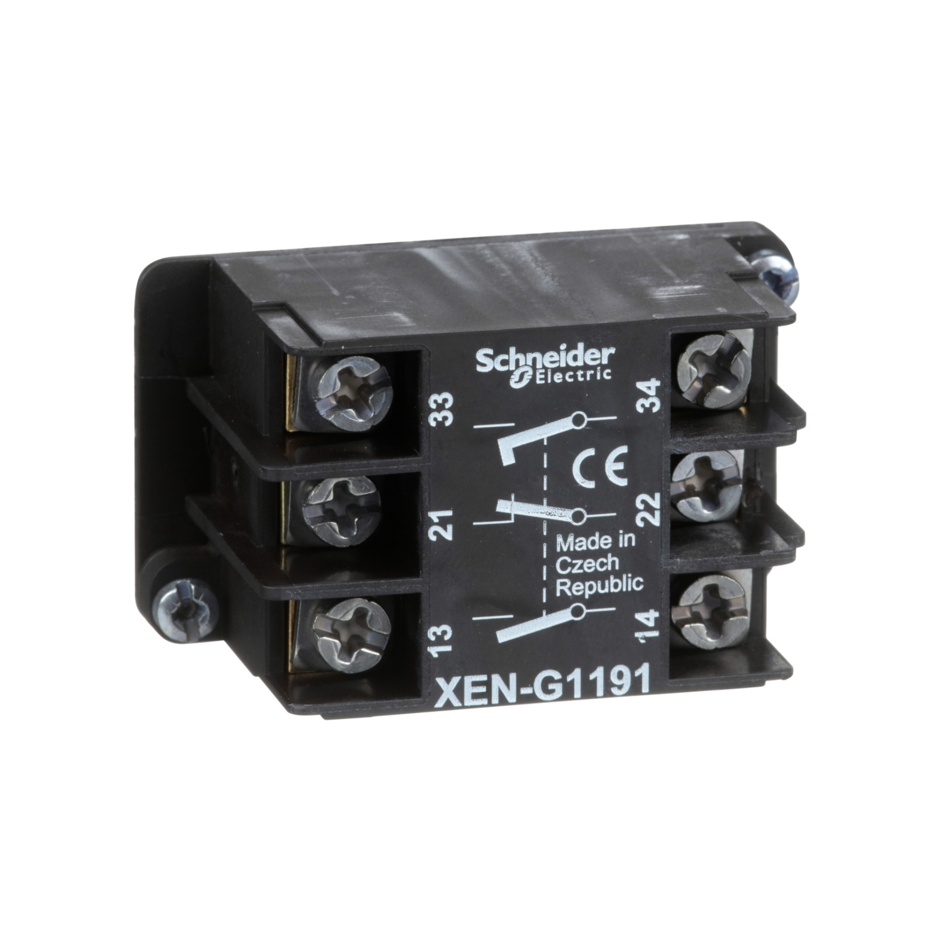 Single contact block, Harmony XAC, spring return, 2 speed, front mounting, 2NO+1NC