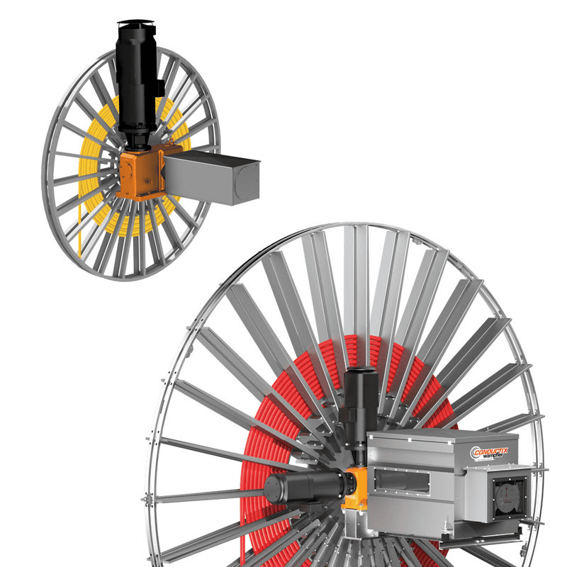 | Một hệ thống đáp ứng các yêu cầu này được gọi là tang quấn cáp (cuộn cáp điều khiển bằng động cơ). | ||||||||||||||